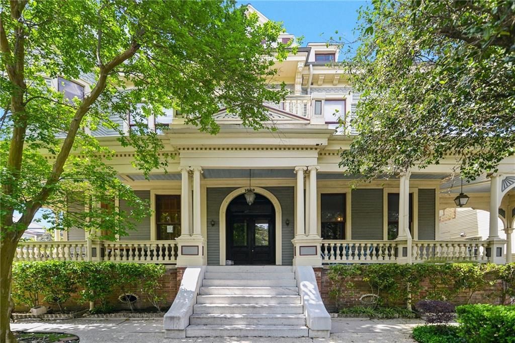 Circa 1860's magnificent mansion divided into condominiums in the 1930's. Paticularly special, it is the front unit on the right having access to the grand front porch and balconies that overlook Coliseum Square and has its own private electric gated covered parking for 3 cars. Grand high ceilings & some cove ceilings, original hardwood floors, beveled glass floor to ceiling windows, shutters, working window with sash cords and original brick & wood fireplace mantles are a rare find! Enjoy the brick patio & swimming pool common areas too! Age of roof 2021; Under Termite Contract; Pool recently replastered. Two Central Air/Heat Systems